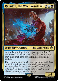 At the beginning of your upkeep, you lose 2 life and exile the top card of your library. You may play that card for as long as it remains exiled. Each noncreature spell you cast from exile has conspire. (As you cast that spell, you may tap two untapped creatures you control that share a color with it. When you do, copy it and you may choose new targets for the copy.)