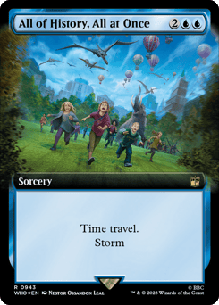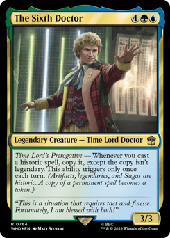 Time Lord's Prerogative — Whenever you cast a historic spell, copy it, except the copy isn't legendary. This ability triggers only once each turn. (Artifacts, legendaries, and Sagas are historic. A copy of a permanent spell becomes a token.)