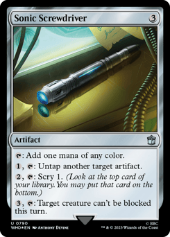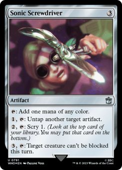{T}: Add one mana of any color. {1}, {T}: Untap another target artifact. {2}, {T}: Scry 1. (Look at the top card of your library. You may put that card on the bottom.) {3}, {T}: Target creature can't be blocked this turn.