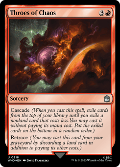 Cascade (When you cast this spell, exile cards from the top of your library until you exile a nonland card that costs less. You may cast it without paying its mana cost. Put the exiled cards on the bottom in a random order.) Retrace (You may cast this card from your graveyard by discarding a land card in addition to paying its other costs.)