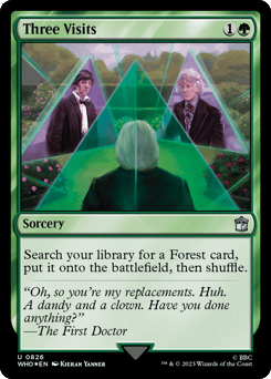 Trample The Third Doctor gets +1/+1 for each noncreature token you control. When The Third Doctor enters, create your choice of a Clue token, a Food token, or a Treasure token.