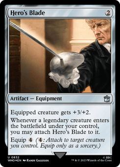 Equipped creature gets +3/+2. Whenever a legendary creature you control enters, you may attach this Equipment to it. Equip {4} ({4}: Attach to target creature you control. Equip only as a sorcery.)