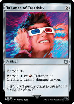 {T}: Add {C}. {T}: Add {U} or {R}. This artifact deals 1 damage to you.
