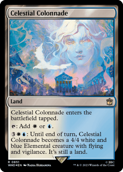 This land enters tapped. {T}: Add {W} or {U}. {3}{W}{U}: Until end of turn, this land becomes a 4/4 white and blue Elemental creature with flying and vigilance. It's still a land.