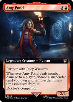 Partner with Amy Pond First strike, lifelink The Last Centurion — When you cast this spell from anywhere other than exile, exile it with three time counters on it. It gains suspend. Then investigate. (Create a Clue token. It's an artifact with "{2}, Sacrifice this token: Draw a card.")