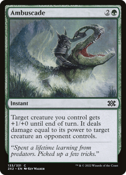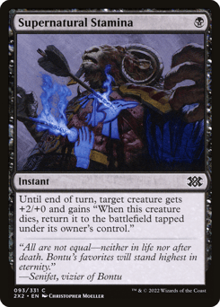 Until end of turn, target creature gets +2/+0 and gains "When this creature dies, return it to the battlefield tapped under its owner's control."