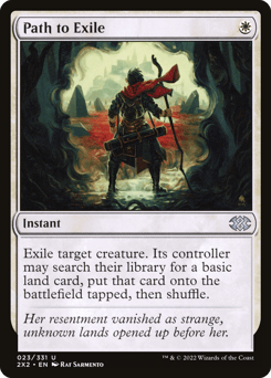 Exile target creature. Its controller may search their library for a basic land card, put that card onto the battlefield tapped, then shuffle.