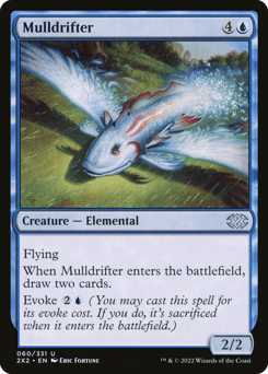 Flying When this creature enters, draw two cards. Evoke {2}{U} (You may cast this spell for its evoke cost. If you do, it's sacrificed when it enters.)
