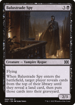 Flying When this creature enters, target player reveals cards from the top of their library until they reveal a land card, then puts those cards into their graveyard.