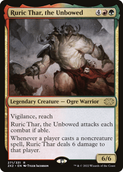 Vigilance, reach Ruric Thar attacks each combat if able. Whenever a player casts a noncreature spell, Ruric Thar deals 6 damage to that player.