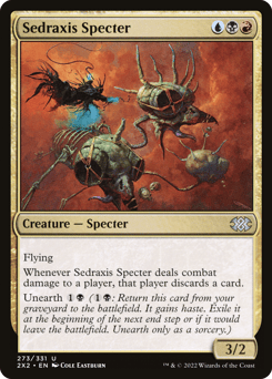 Flying Whenever this creature deals combat damage to a player, that player discards a card. Unearth {1}{B} ({1}{B}: Return this card from your graveyard to the battlefield. It gains haste. Exile it at the beginning of the next end step or if it would leave the battlefield. Unearth only as a sorcery.)