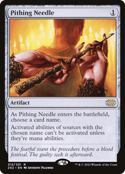 As this artifact enters, choose a card name. Activated abilities of sources with the chosen name can't be activated unless they're mana abilities.