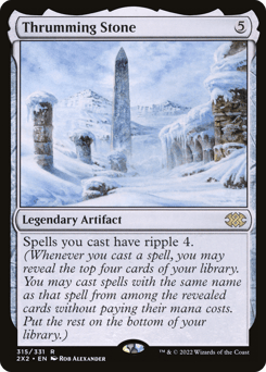 Spells you cast have ripple 4. (Whenever you cast a spell, you may reveal the top four cards of your library. You may cast spells with the same name as that spell from among the revealed cards without paying their mana costs. Put the rest on the bottom of your library.)