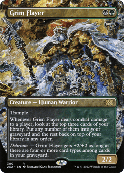 When this creature enters, look at the top four cards of your library. Put one of them into your hand and the rest into your graveyard.