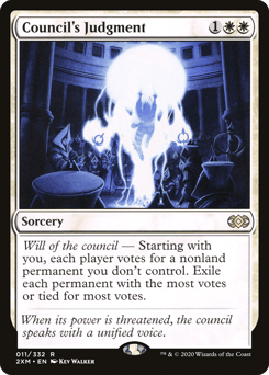 Will of the council — Starting with you, each player votes for a nonland permanent you don't control. Exile each permanent with the most votes or tied for most votes.