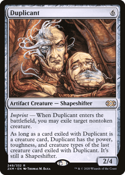 ({U/P} can be paid with either {U} or 2 life.) You may have this creature enter as a copy of any artifact or creature on the battlefield, except it's an artifact in addition to its other types.