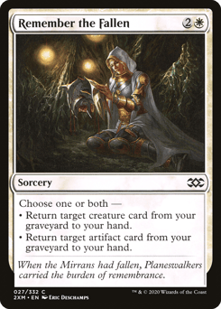 Choose one or both — • Return target creature card from your graveyard to your hand. • Return target artifact card from your graveyard to your hand.