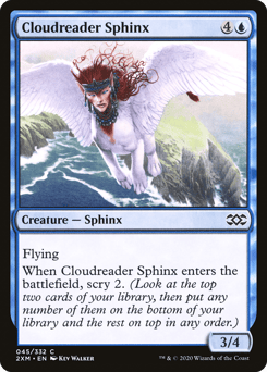 Flying When this creature enters, scry 2. (Look at the top two cards of your library, then put any number of them on the bottom and the rest on top in any order.)