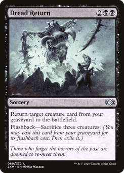 Return target creature card from your graveyard to the battlefield. Flashback—Sacrifice three creatures. (You may cast this card from your graveyard for its flashback cost. Then exile it.)