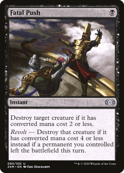 Destroy target creature if it has mana value 2 or less. Revolt — Destroy that creature if it has mana value 4 or less instead if a permanent left the battlefield under your control this turn.