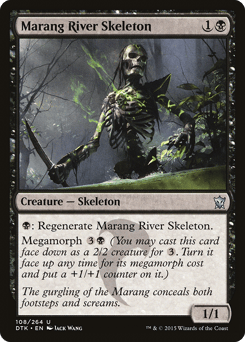 Flying, deathtouch Megamorph {5}{B}{B} (You may cast this card face down as a 2/2 creature for {3}. Turn it face up any time for its megamorph cost and put a +1/+1 counter on it.) When this creature is turned face up, put a +1/+1 counter on each other Dragon creature you control.