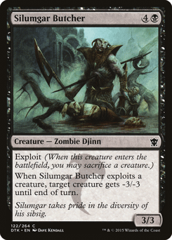Exploit (When this creature enters, you may sacrifice a creature.) When this creature exploits a creature, look at the top four cards of your library. Put one of them into your hand and the rest into your graveyard.