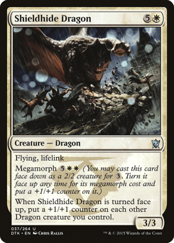 Flying, lifelink Megamorph {5}{W}{W} (You may cast this card face down as a 2/2 creature for {3}. Turn it face up any time for its megamorph cost and put a +1/+1 counter on it.) When this creature is turned face up, put a +1/+1 counter on each other Dragon creature you control.