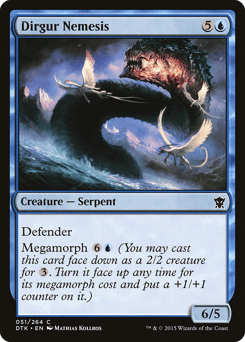 Megamorph {4}{U} (You may cast this card face down as a 2/2 creature for {3}. Turn it face up any time for its megamorph cost and put a +1/+1 counter on it.) When this creature is turned face up, counter target spell unless its controller pays {3}.