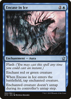 Flash (You may cast this spell any time you could cast an instant.) Enchant red or green creature When this Aura enters, tap enchanted creature. Enchanted creature doesn't untap during its controller's untap step.