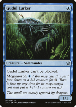This creature can't be blocked. Megamorph {U} (You may cast this card face down as a 2/2 creature for {3}. Turn it face up any time for its megamorph cost and put a +1/+1 counter on it.)