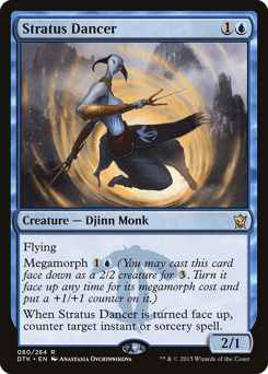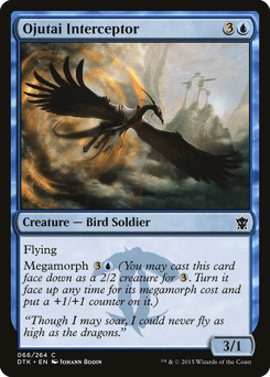 Flying Megamorph {1}{U} (You may cast this card face down as a 2/2 creature for {3}. Turn it face up any time for its megamorph cost and put a +1/+1 counter on it.) When this creature is turned face up, counter target instant or sorcery spell.