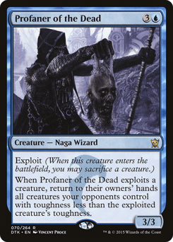 Exploit (When this creature enters, you may sacrifice a creature.) When this creature exploits a creature, return to their owners' hands all creatures your opponents control with toughness less than the exploited creature's toughness.