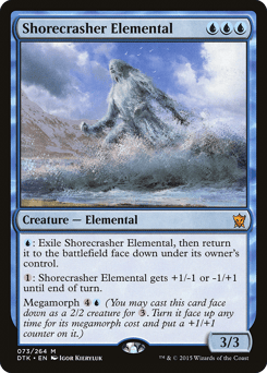 {U}: Exile this creature, then return it to the battlefield face down under its owner's control. {1}: This creature gets +1/-1 or -1/+1 until end of turn. Megamorph {4}{U} (You may cast this card face down as a 2/2 creature for {3}. Turn it face up any time for its megamorph cost and put a +1/+1 counter on it.)