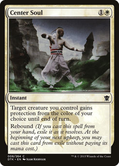 Target creature you control gains protection from the color of your choice until end of turn. Rebound (If you cast this spell from your hand, exile it as it resolves. At the beginning of your next upkeep, you may cast this card from exile without paying its mana cost.)
