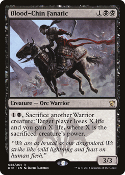 {1}{B}, Sacrifice another Warrior creature: Target player loses X life and you gain X life, where X is the sacrificed creature's power.