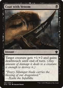 Target creature gets +1/+2 and gains deathtouch until end of turn. (Any amount of damage it deals to a creature is enough to destroy it.)