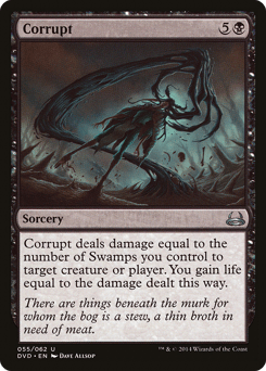 Corrupt deals damage to any target equal to the number of Swamps you control. You gain life equal to the damage dealt this way.