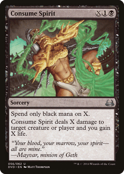 Spend only black mana on X. Consume Spirit deals X damage to any target and you gain X life.