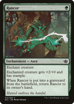 Enchant creature Enchanted creature gets +2/+0 and has trample. When this Aura is put into a graveyard from the battlefield, return it to its owner's hand.