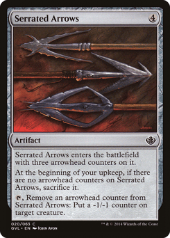 This artifact enters with three arrowhead counters on it. At the beginning of your upkeep, if there are no arrowhead counters on this artifact, sacrifice it. {T}, Remove an arrowhead counter from this artifact: Put a -1/-1 counter on target creature.