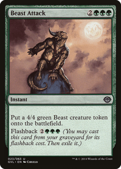 Create a 4/4 green Beast creature token. Flashback {2}{G}{G}{G} (You may cast this card from your graveyard for its flashback cost. Then exile it.)