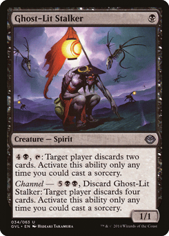 {4}{B}, {T}: Target player discards two cards. Activate only as a sorcery. Channel — {5}{B}{B}, Discard this card: Target player discards four cards. Activate only as a sorcery.