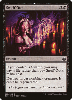 If you control a Swamp, you may pay 4 life rather than pay this spell's mana cost. Destroy target nonblack creature. It can't be regenerated.