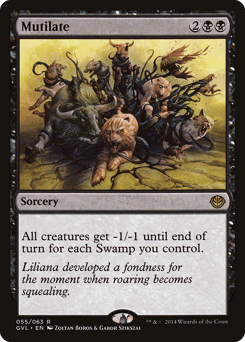 All creatures get -1/-1 until end of turn for each Swamp you control.