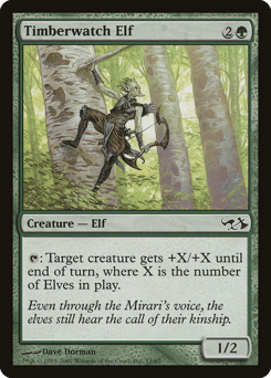 {T}: Target creature gets +X/+X until end of turn, where X is the number of Elves on the battlefield.