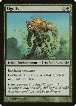 Enchant creature Enchanted creature is a Treefolk with base power and toughness 0/4 and loses all abilities.