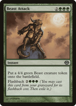 Create a 4/4 green Beast creature token. Flashback {2}{G}{G}{G} (You may cast this card from your graveyard for its flashback cost. Then exile it.)