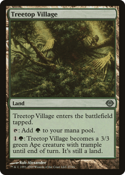 This land enters tapped. {T}: Add {G}. {1}{G}: This land becomes a 3/3 green Ape creature with trample until end of turn. It's still a land. (It can deal excess combat damage to the player or planeswalker it's attacking.)
