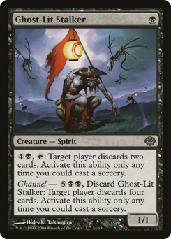 {4}{B}, {T}: Target player discards two cards. Activate only as a sorcery. Channel — {5}{B}{B}, Discard this card: Target player discards four cards. Activate only as a sorcery.