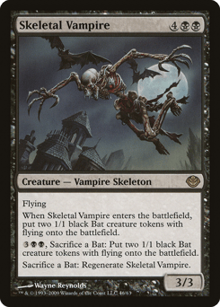 Flying When this creature enters, create two 1/1 black Bat creature tokens with flying. {3}{B}{B}, Sacrifice a Bat: Create two 1/1 black Bat creature tokens with flying. Sacrifice a Bat: Regenerate this creature.